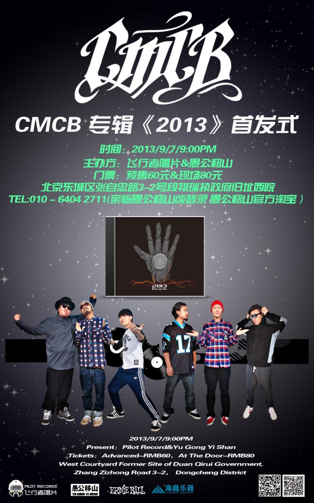 For CMCB, 2013 was a special set of symbols, the new entity studio album “2013” will put Chinese rap rock gorgeously presented on the stage. It is full of Beijing Taste and rock energy. You can listen to the high quality music and feel the unique style of CMCB, also,it is more international.