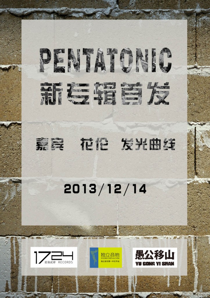 Pentatonic的名字来自中国传统音乐概念——五声音阶,在声音表现上则是完全的“当下时态”——在西方独立音乐方兴未艾的后摇滚、多乐器声场和私人化氛围营造,你甚至会在他们的现场听到更具表现力的舞曲节奏和朋克和弦。这种复杂且奇怪的形态即来自乐队成员不同的音乐取向,也反映了时下中国城市年轻人群的心理趋势——不拘泥于单一框架,在跳脱中前进。由这个角度观照,pentatonic仍然是很中国的一支组合。他们的首张EP唱片于2009年由拾柒贰肆唱片限量发行。2013年,以标注时代特点为野心首张全长《Syndrome》面世,但是pentatonic不是医生,他们做到的,只能是收集这些城市病人,包括他们自己的残缺美,化作所有美妙的音乐幻想。