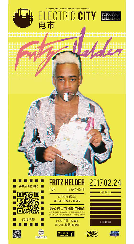2017年的Electric City电市,将在2月24日重新开启,知名舞曲组合Azari & III的成员Fritz Helder将带着他野心勃勃的个人专辑来到愚公移山,潮流电音掀起春日第一道波澜。